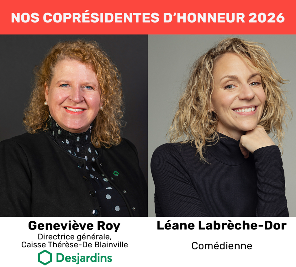 Geneviève Roy, directrice générale de la Caisse Desjardins Thérèse‑De Blainville, ainsi que la comédienne Léane Labrèche‑Dor, agiront à titre de coprésidentes d’honneur lors de l’événement.